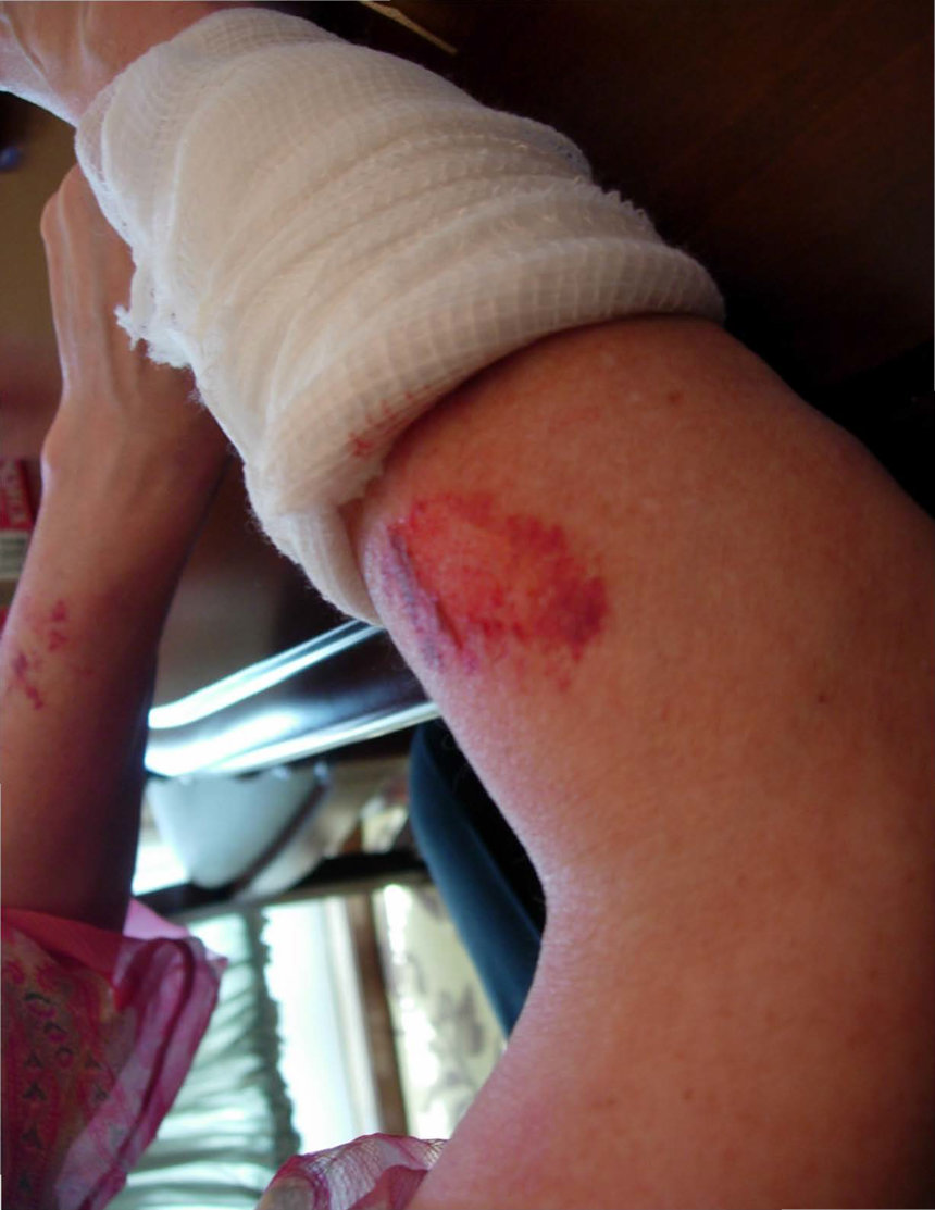 Mike attacked me viciously in April 2010. Mike is nearly twice my size. He grabbed my forearms, crossing them over into a vice-like grip. He started pulling my arms so hard I could hear my bones cracking. He had his face right up to me and was screaming unrepeatable obscenities. He had something in his hands and pulled my forearm so hard it ripped a hole in my arm, causing me to bleed. I was screaming for him to stop. My daughter, Taryn, as she has noted to you in her letters, witnessed it all. So did Mike’s brother, Andrew.
